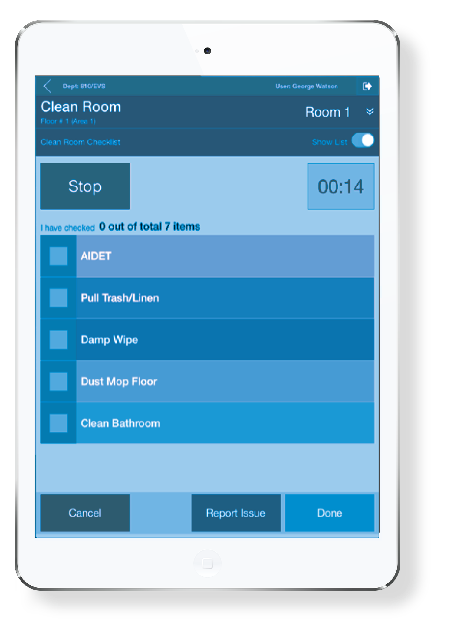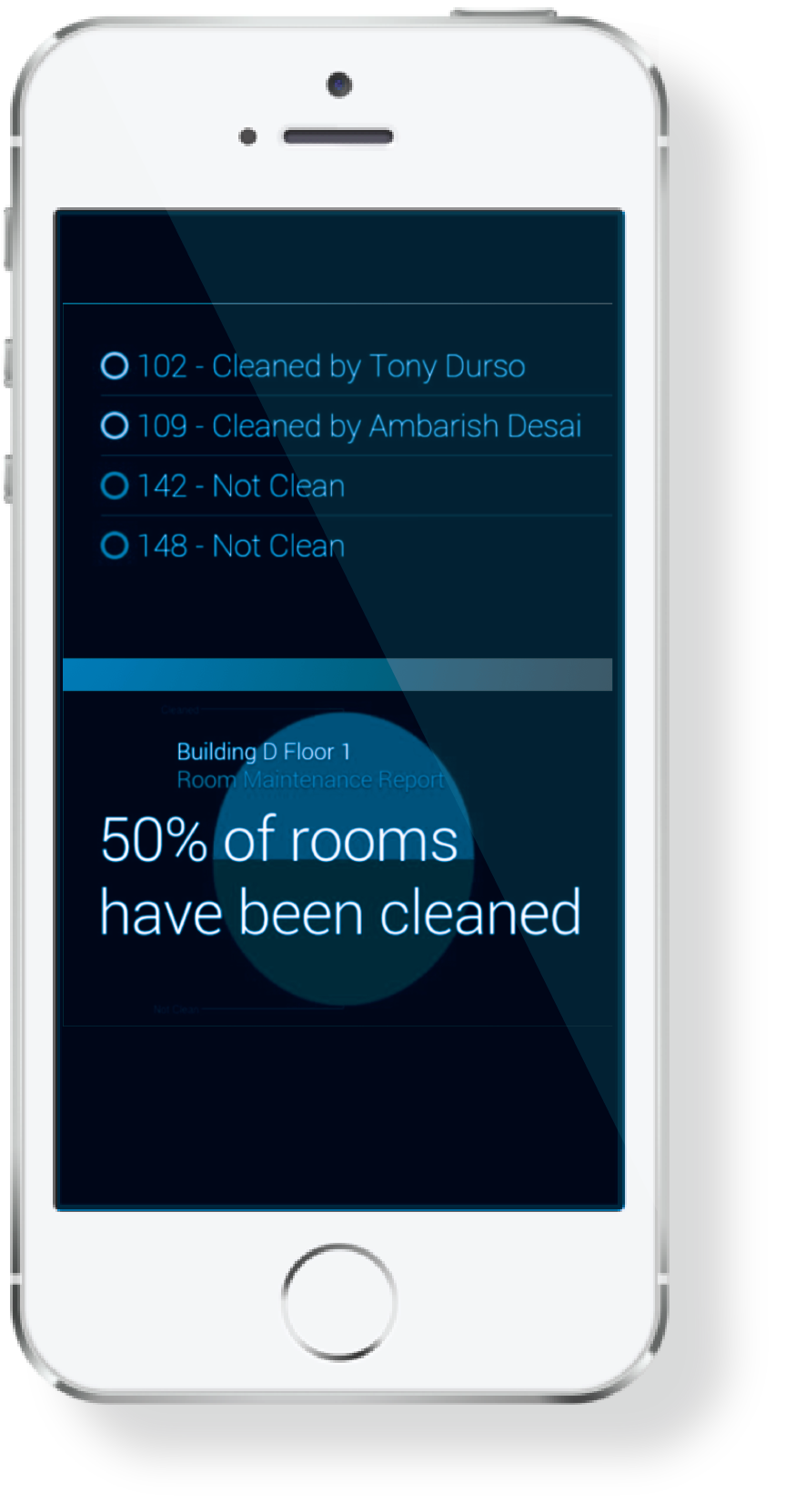 See available rooms, rooms to clean, and rooms in progress stats in real-time.